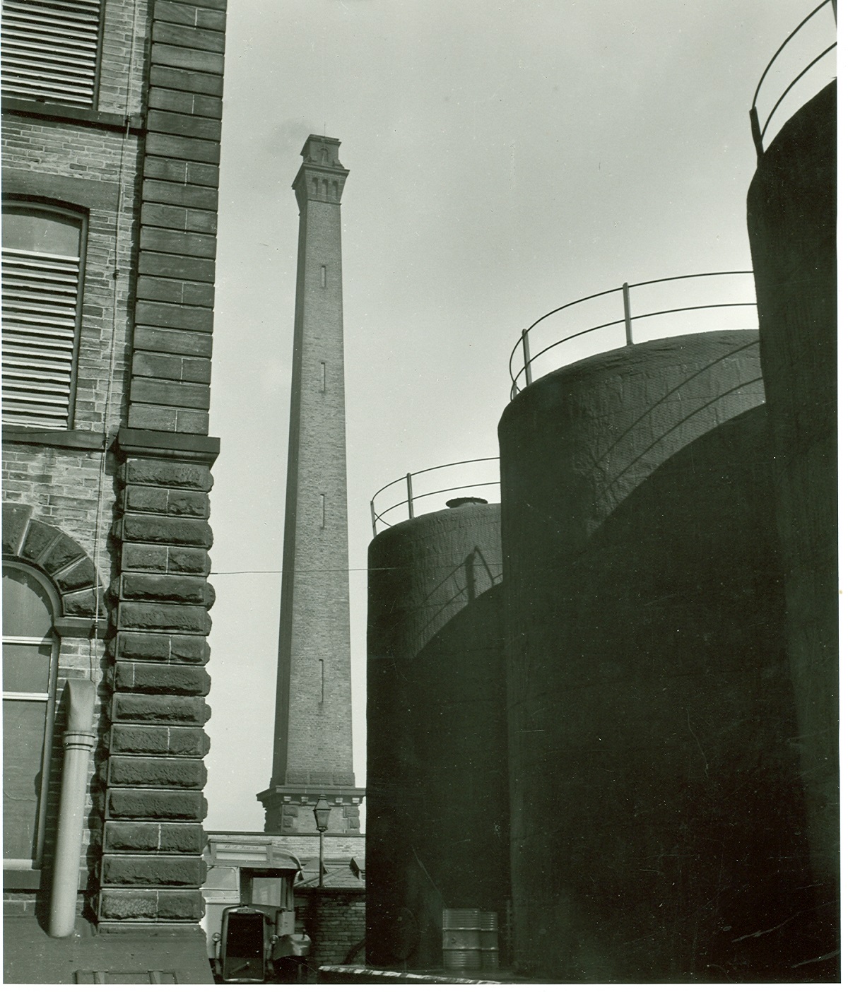 The original Salts Mill chimney, viewed from Rhodes Street.